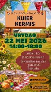 Die kermis is om die draai! Ons vra asb nog lidmate om by die tafels / stalletjies te kom help. Kontak asb vir Trunette 0785382531.